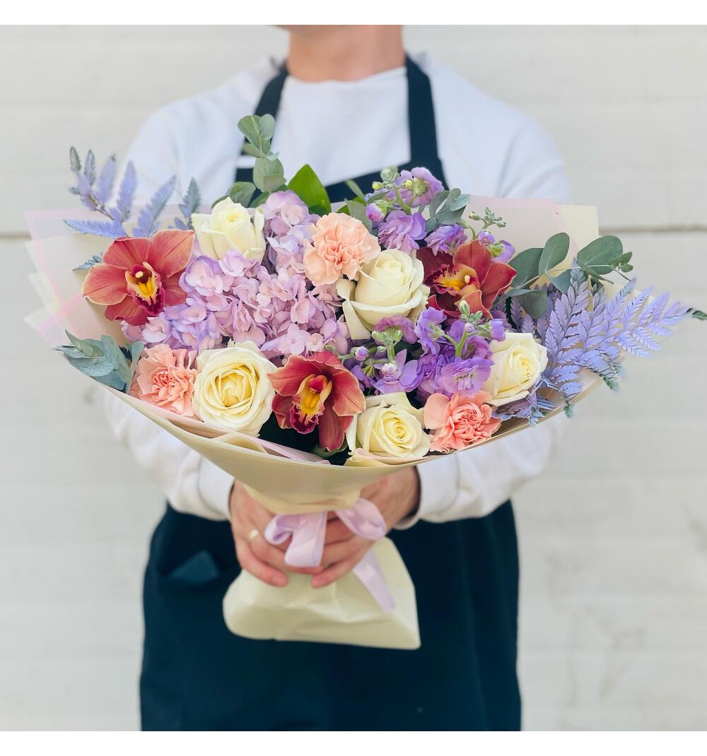 Купить Авторский букет с оранжевыми орхидеями в Аральске за 25 000 ₸ | интернет-магазин «Guls»